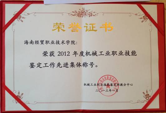 本院2月1日讯(机电工程系报道)近日,2012年度全国机械工业职业技能鉴定工作总结表彰大会在云南昆明隆重召开。设立在我院的机械工业职业技能鉴定职教海口点在2012年度工作中规范开展鉴定工作、努力提高鉴定质量,工作成绩突出,喜获“2012年度全国机械工业职业技能鉴定工作先进集体”荣誉称号。张克明、林盛和黄英超三位同志分别获得了“2012年度全国机械工业职业技能鉴定工作优秀管理者、先进工作者”荣誉称号。